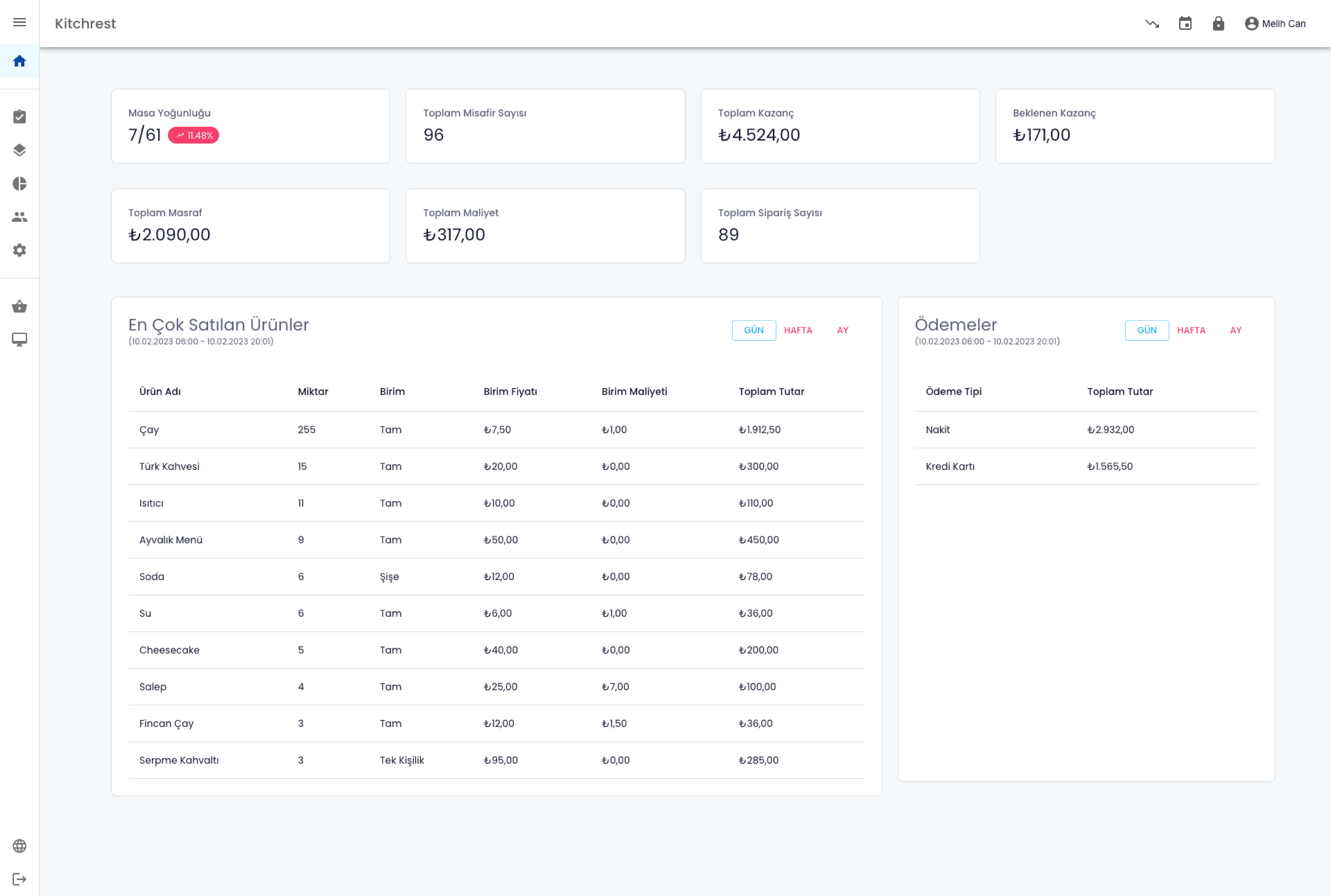 Masa siparişi, mutfak takibi, masraf yönetimi, termal yazıcı entegrasyonu, günlük raporlamalar ve dahası...
